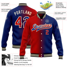 • Load image into Gallery viewer, Custom Royal Red-Cream Bomber Full-Snap Varsity Letterman Gradient Fashion Jacket