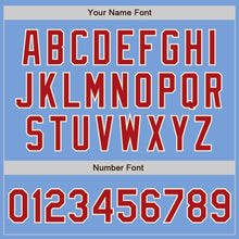 • Load image into Gallery viewer, Custom Light Blue Red-Cream Bomber Full-Snap Varsity Letterman Jacket