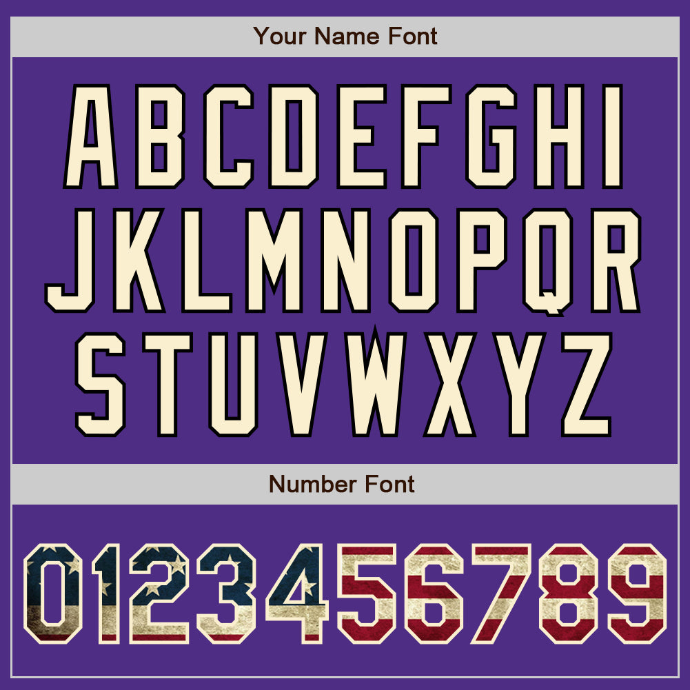 Custom Purple Vintage USA Flag Cream-Black Bomber Full-Snap Varsity Letterman Jacket