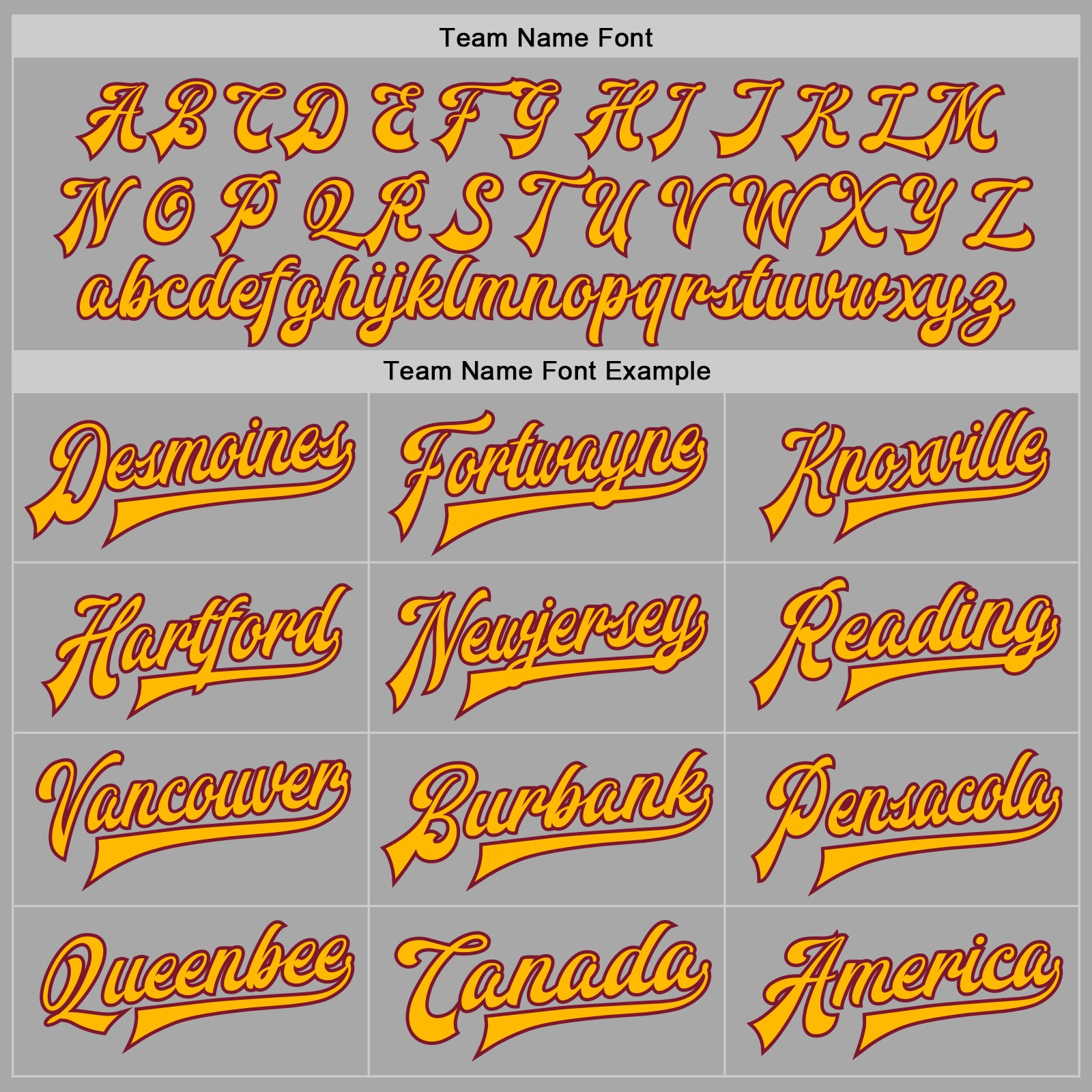 Custom Gray Crimson-Gold Bomber Full-Snap Varsity Letterman Two Tone Jacket