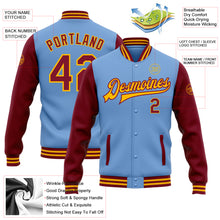 • Load image into Gallery viewer, Custom Light Blue Crimson-Gold Bomber Full-Snap Varsity Letterman Two Tone Jacket