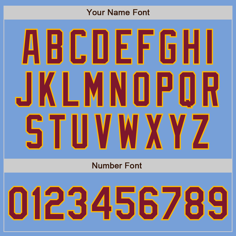 Custom Light Blue Crimson-Gold Bomber Full-Snap Varsity Letterman Two Tone Jacket