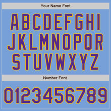 • Load image into Gallery viewer, Custom Light Blue Purple-Gold Bomber Full-Snap Varsity Letterman Two Tone Jacket