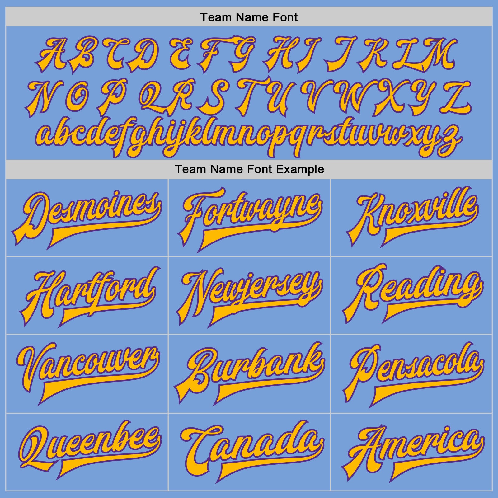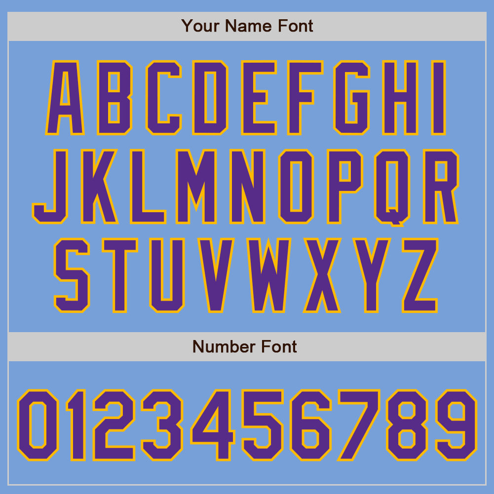 Custom Light Blue Purple-Gold Bomber Full-Snap Varsity Letterman Two Tone Jacket
