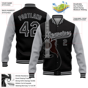 Custom Black Gray Guitar Music Festival 3D Pattern Design Bomber Full-Snap Varsity Letterman Jacket