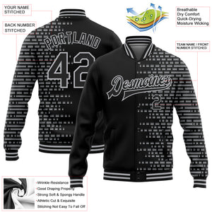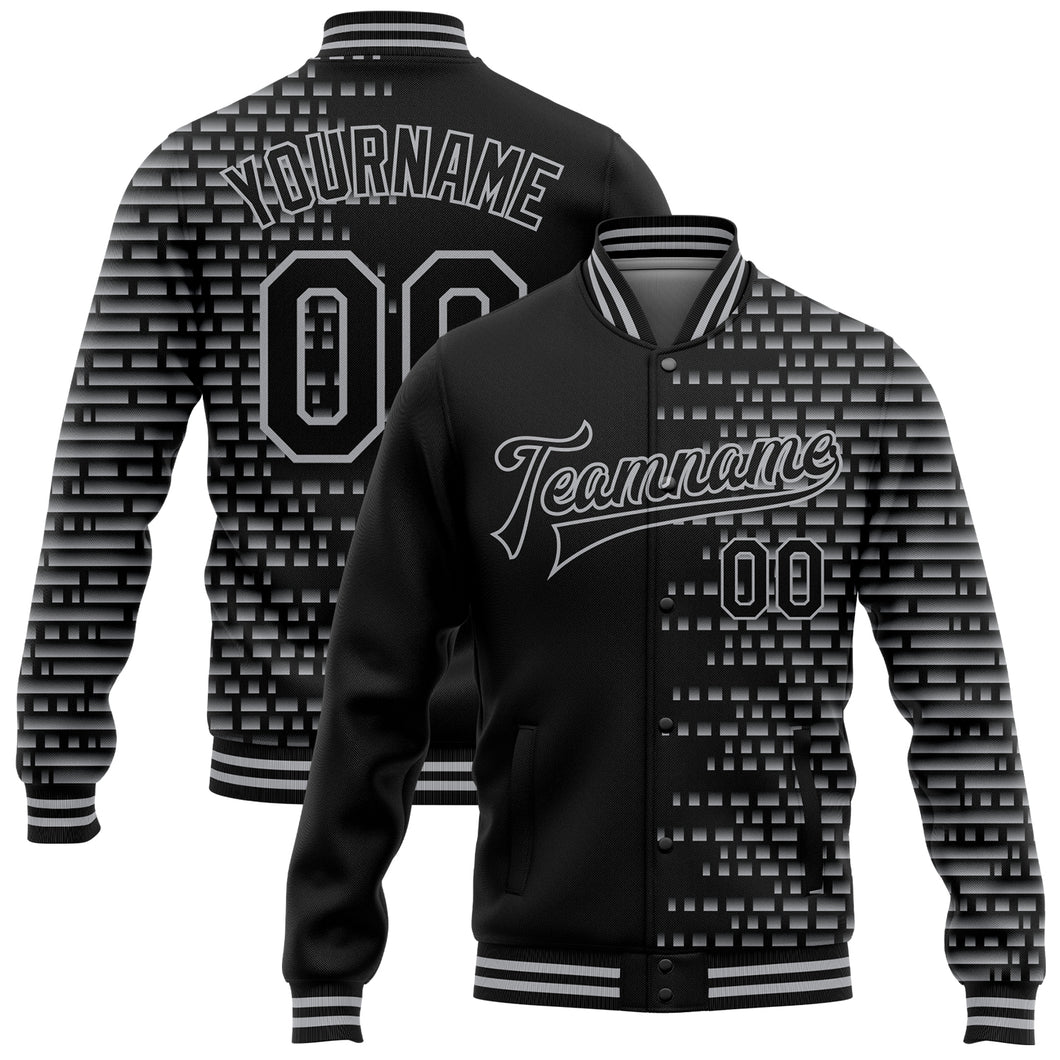 Custom Black Gray Halftone 3D Pattern Design Bomber Full-Snap Varsity Letterman Jacket