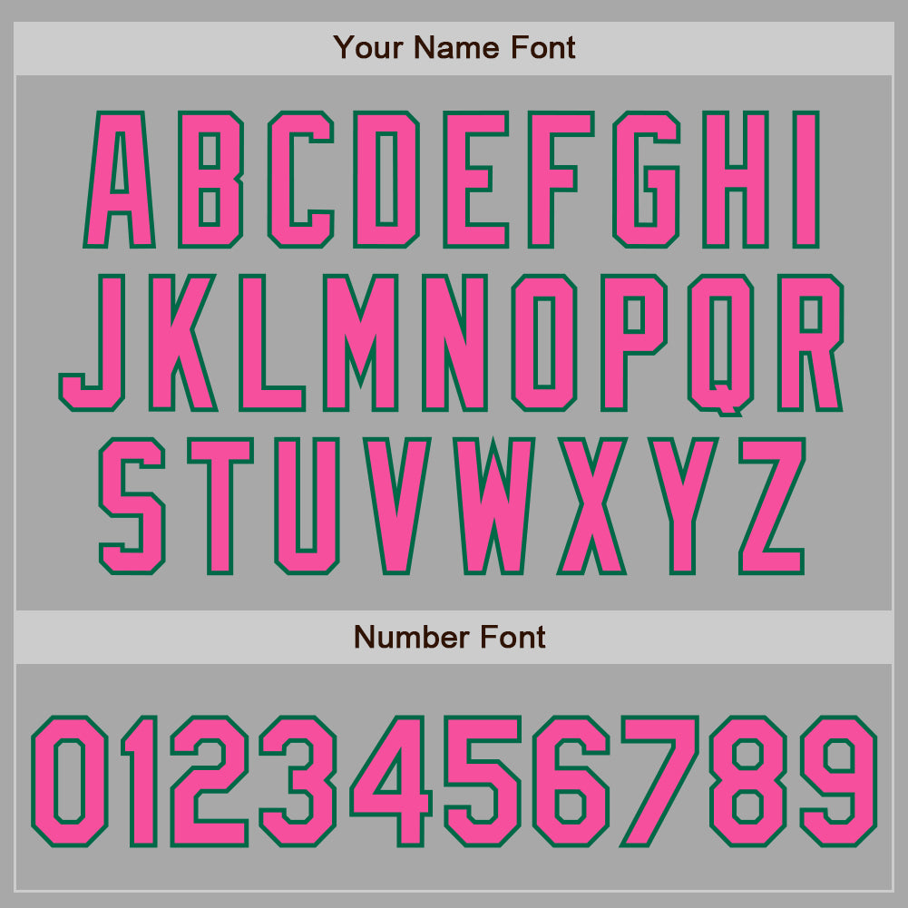 Custom Gray Pink-Kelly Green Bomber Full-Snap Varsity Letterman Jacket