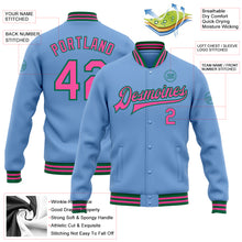 • Load image into Gallery viewer, Custom Light Blue Pink-Kelly Green Bomber Full-Snap Varsity Letterman Jacket