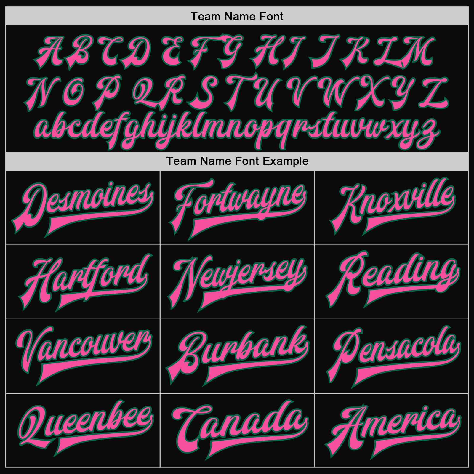 Custom Black Pink-Kelly Green Bomber Full-Snap Varsity Letterman Two Tone Jacket