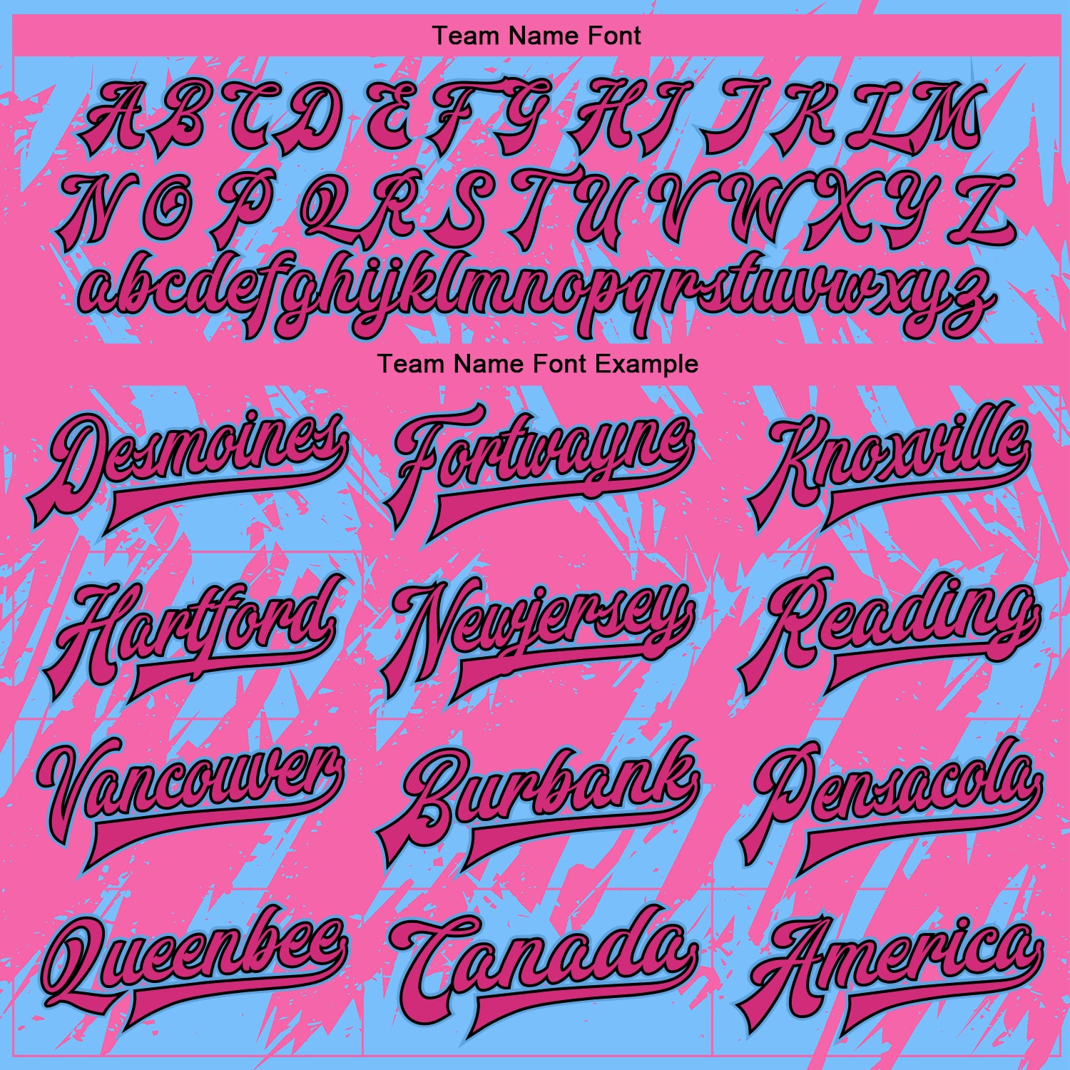 Custom Pink Light Blue-Black 3D Pattern Design Bomber Full-Snap Varsity Letterman Jacket
