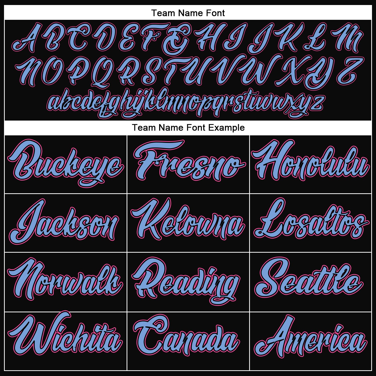Custom Black Pink-Light Blue Bomber Full-Snap Varsity Letterman Two Tone Jacket