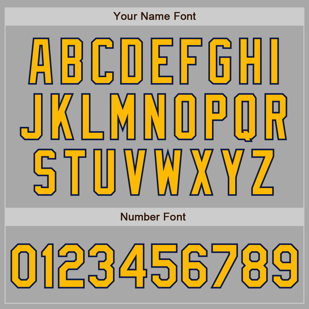 Custom Gray Gold-Navy Bomber Full-Snap Varsity Letterman Jacket