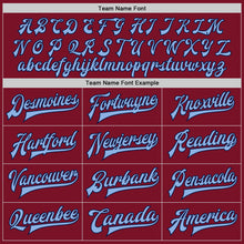 • Load image into Gallery viewer, Custom Crimson Light Blue-Navy Bomber Full-Snap Varsity Letterman Two Tone Jacket