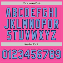 • Load image into Gallery viewer, Custom Pink Light Blue-Navy Bomber Full-Snap Varsity Letterman Two Tone Jacket