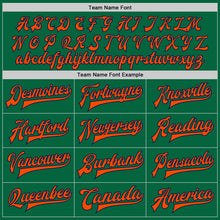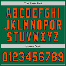 • Load image into Gallery viewer, Custom Kelly Green Orange-Navy Bomber Full-Snap Varsity Letterman Jacket
