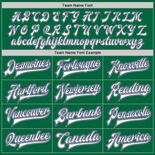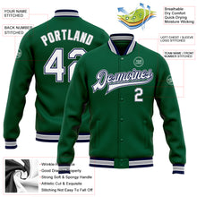 • Load image into Gallery viewer, Custom Kelly Green White Navy-Gray Bomber Full-Snap Varsity Letterman Jacket