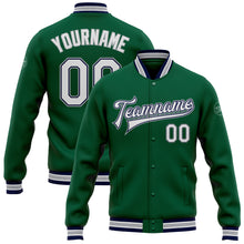Custom Kelly Green White Navy-Gray Bomber Full-Snap Varsity Letterman Jacket