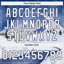 • Load image into Gallery viewer, Custom Royal White-Navy Watercolor Winter Snow Landscape 3D Pattern Design Bomber Full-Snap Varsity Letterman Jacket