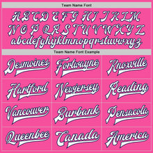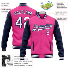 • Load image into Gallery viewer, Custom Pink White-Navy Bomber Full-Snap Varsity Letterman Two Tone Jacket