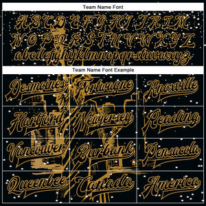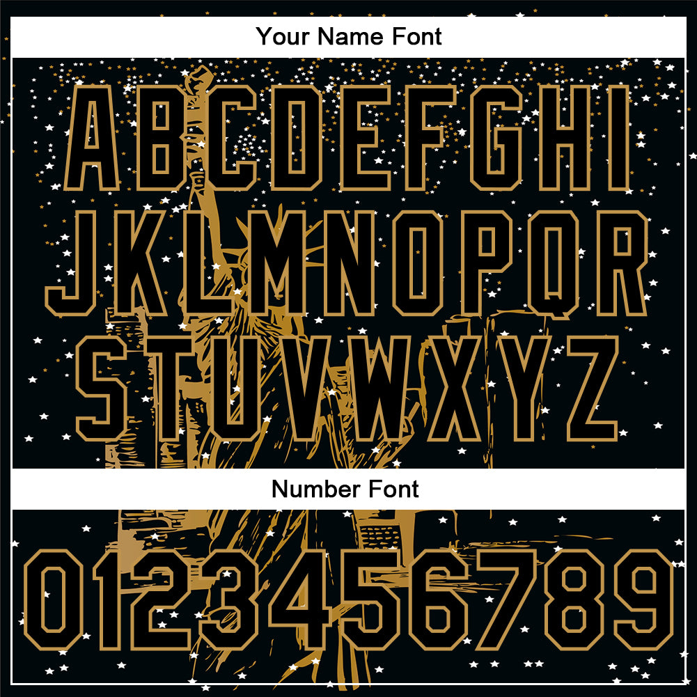 Custom Black Old Gold New York Statue of Liberty 3D Pattern Design Bomber Full-Snap Varsity Letterman Jacket