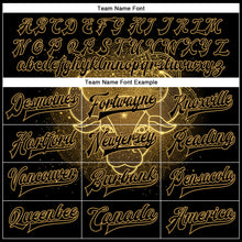 • Load image into Gallery viewer, Custom Black Old Gold Taurus 3D Pattern Design Bomber Full-Snap Varsity Letterman Jacket