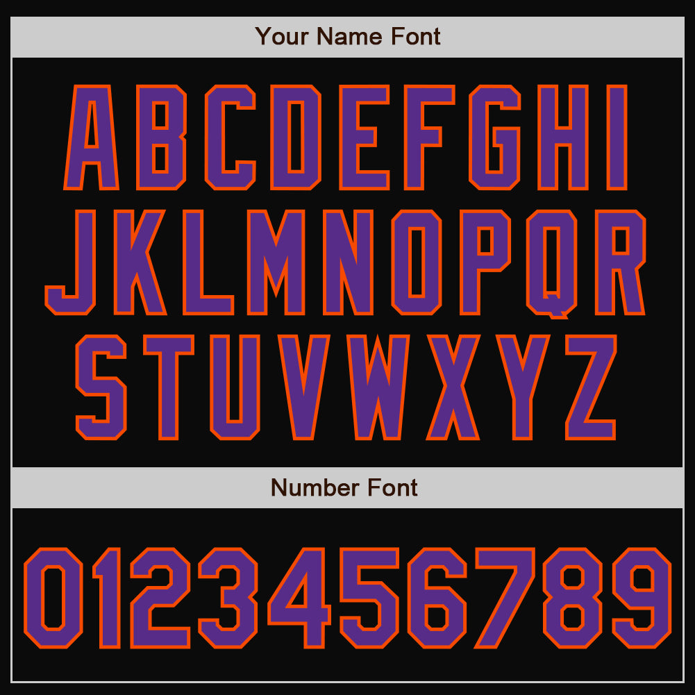 Custom Black Purple-Orange Bomber Full-Snap Varsity Letterman Two Tone Jacket