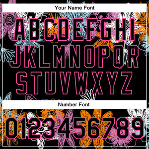 Custom Black Pink Flowers 3D Pattern Design Bomber Full-Snap Varsity Letterman Jacket