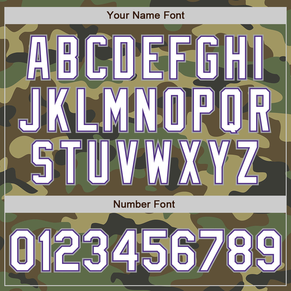 Custom Camo White Purple-Gray Bomber Full-Snap Varsity Letterman Salute To Service Jacket
