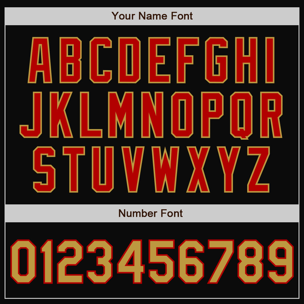 Custom Black Old Gold-Red Bomber Full-Snap Varsity Letterman Two Tone Jacket