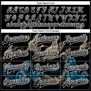 • Load image into Gallery viewer, Custom Black Royal-White Heron And Wave 3D Pattern Design Bomber Full-Snap Varsity Letterman Jacket
