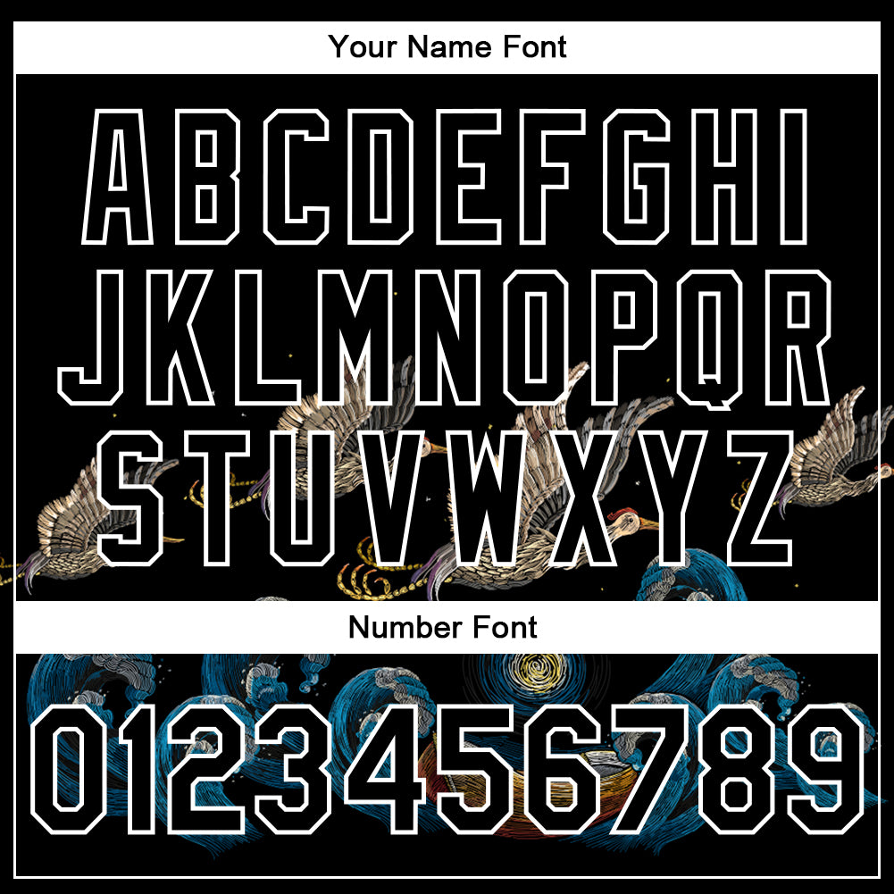 Custom Black Royal-White Heron And Wave 3D Pattern Design Bomber Full-Snap Varsity Letterman Jacket