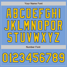 • Load image into Gallery viewer, Custom Light Blue Yellow-Royal Bomber Full-Snap Varsity Letterman Two Tone Jacket