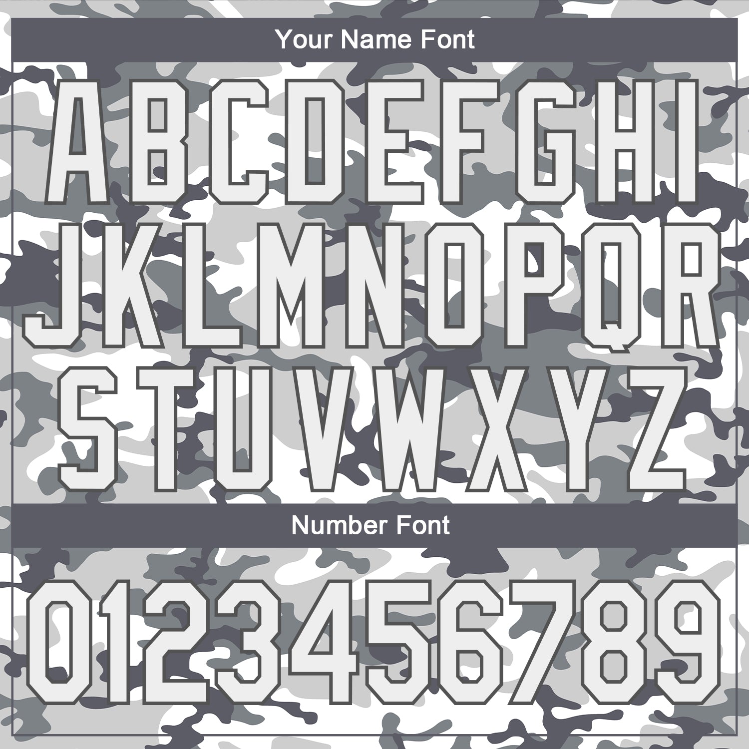 Custom Camo White-Steel Gray Snow Camouflage 3D Bomber Full-Snap Varsity Letterman Salute To Service Jacket