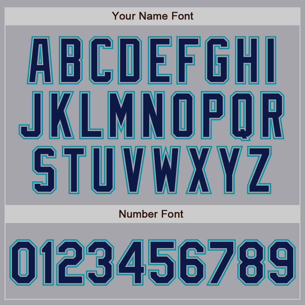 Custom Gray Navy-Teal Bomber Full-Snap Varsity Letterman Jacket