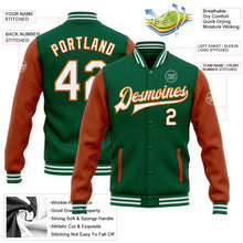 • Load image into Gallery viewer, Custom Kelly Green White-Texas Orange Bomber Full-Snap Varsity Letterman Two Tone Jacket