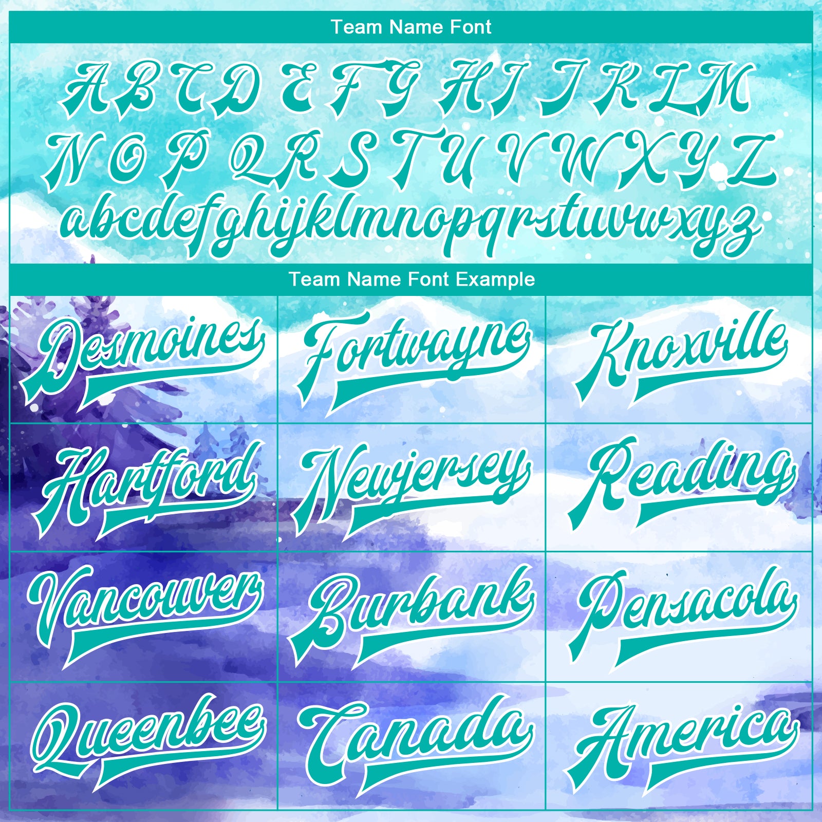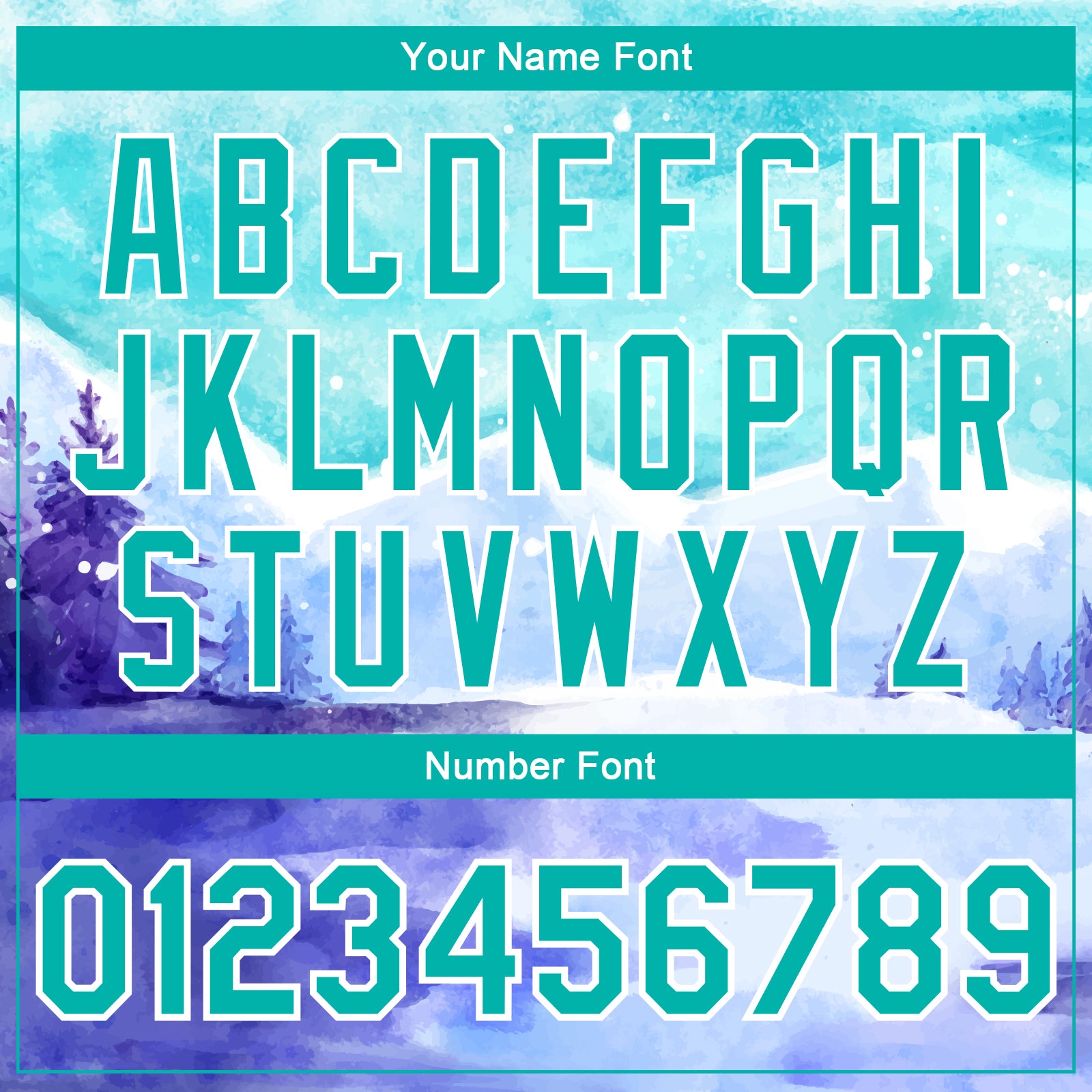 Custom Aqua White Winter Landscape With Watercolor Snowy Mountains And Trees 3D Pattern Design Bomber Full-Snap Varsity Letterman Jacket