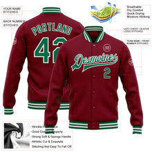 • Load image into Gallery viewer, Custom Crimson Kelly Green-White Bomber Full-Snap Varsity Letterman Jacket