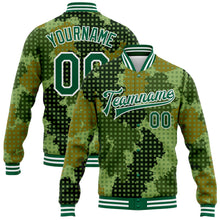 • Load image into Gallery viewer, Custom Camo Kelly Green-White Geometric Camouflage 3D Bomber Full-Snap Varsity Letterman Salute To Service Jacket