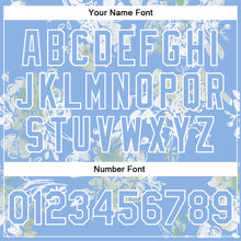 • Load image into Gallery viewer, Custom Light Blue White Plant And Flower 3D Pattern Design Bomber Full-Snap Varsity Letterman Jacket