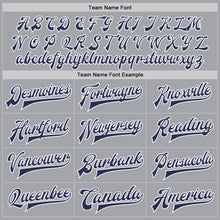 • Load image into Gallery viewer, Custom Gray Navy-White Bomber Full-Snap Varsity Letterman Two Tone Jacket