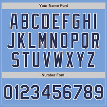 • Load image into Gallery viewer, Custom Light Blue Navy-White Bomber Full-Snap Varsity Letterman Two Tone Jacket