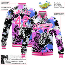 • Load image into Gallery viewer, Custom Black Pink-White Leopard 3D Pattern Design Bomber Full-Snap Varsity Letterman Jacket