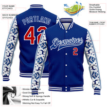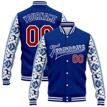 • Load image into Gallery viewer, Custom Royal Red-White Christmas 3D Bomber Full-Snap Varsity Letterman Jacket