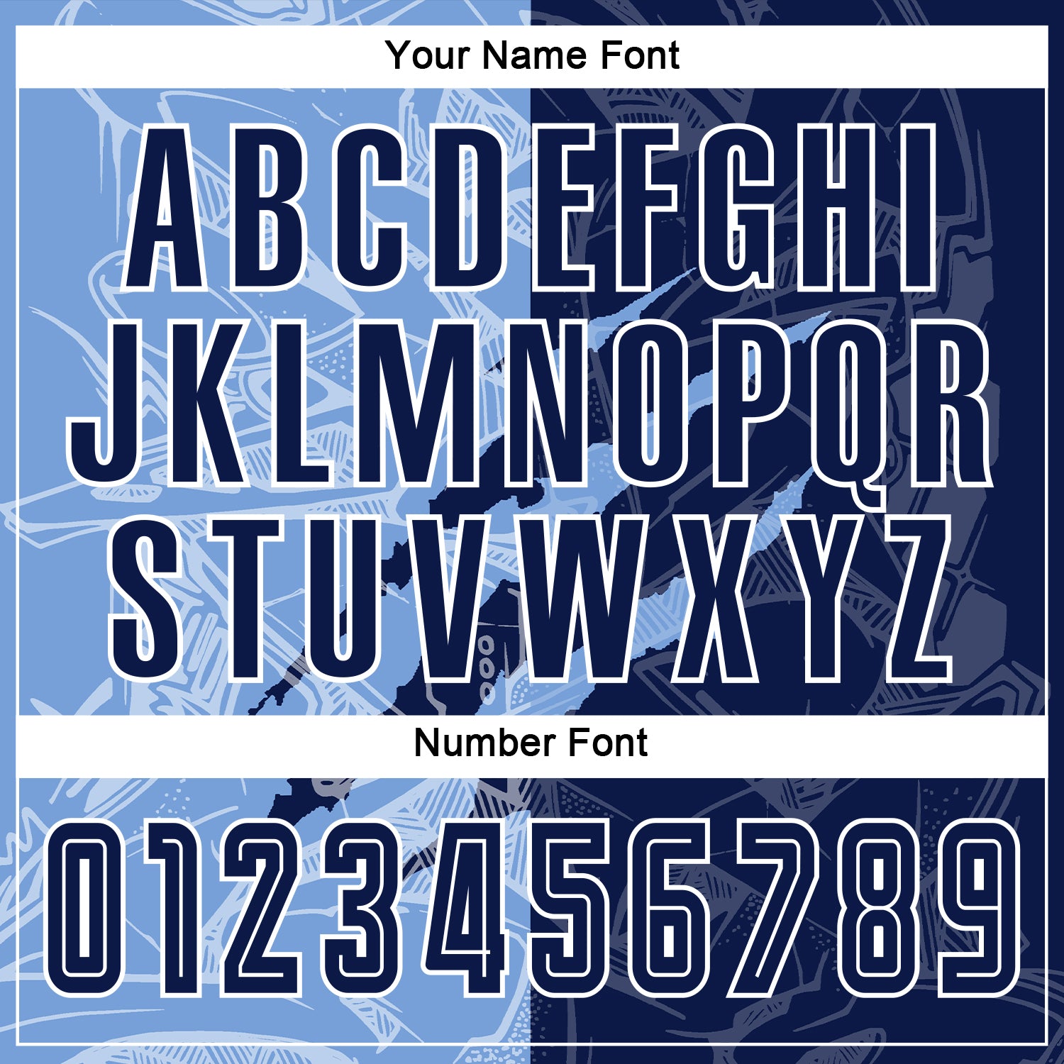 Custom Graffiti Pattern Navy-Light Blue Scratch Sublimation Soccer Uniform Jersey