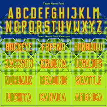 • Load image into Gallery viewer, Custom Royal Neon Green-Orange Sublimation Soccer Uniform Jersey