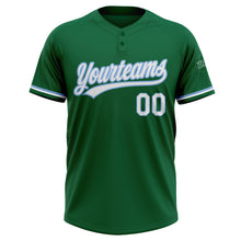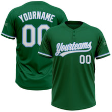 • Load image into Gallery viewer, Custom Kelly Green White-Light Blue Two-Button Unisex Softball Jersey