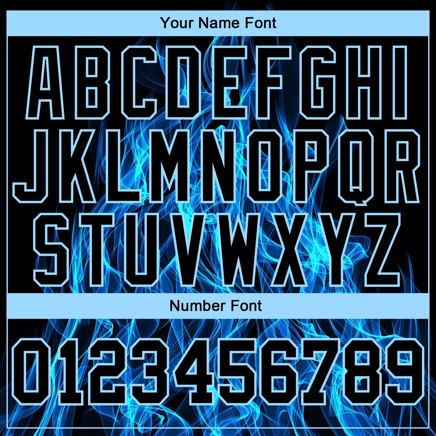 Custom Black Black-Light Blue Flame 3D Pattern Long Sleeve Performance T-Shirt