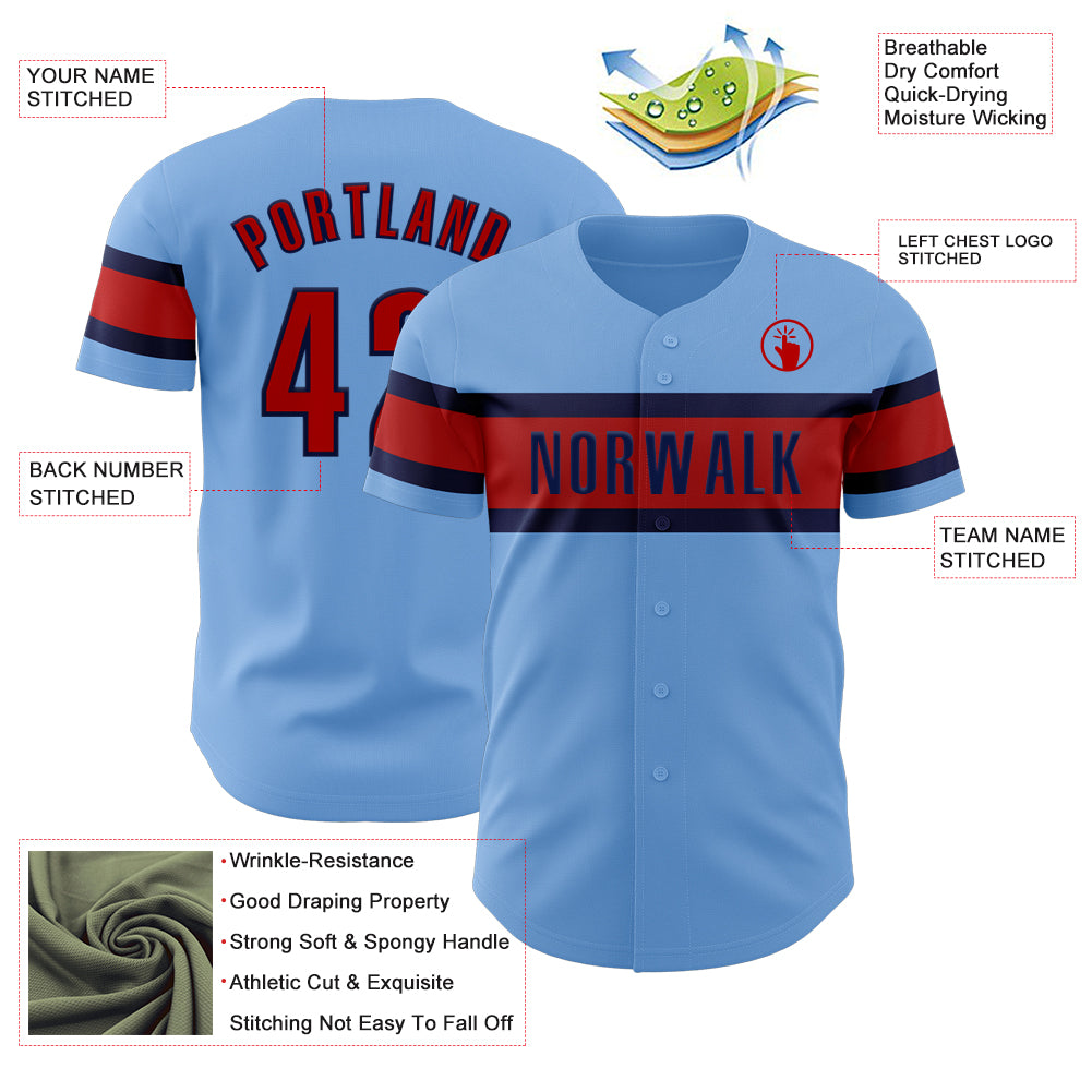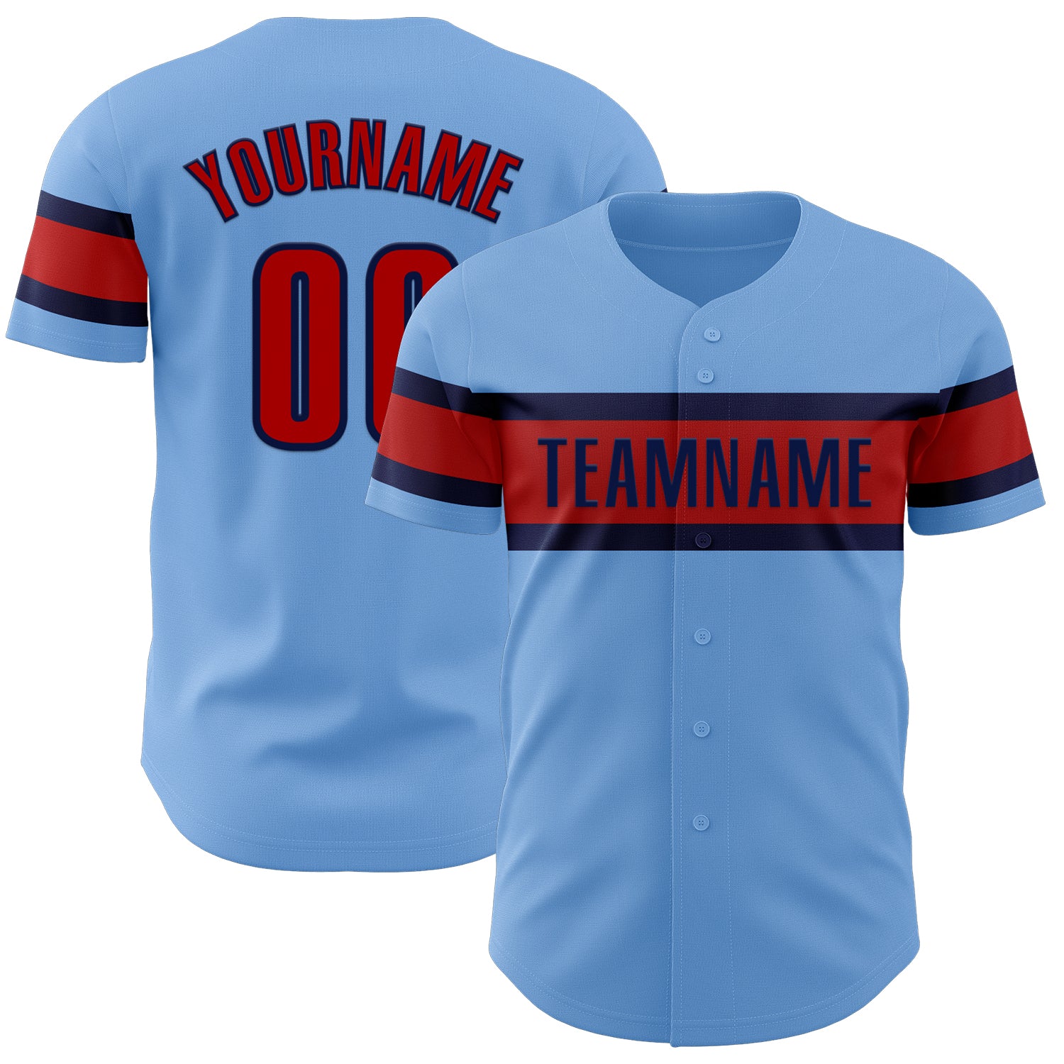 Custom Light Blue Red-Navy Authentic Baseball Jersey