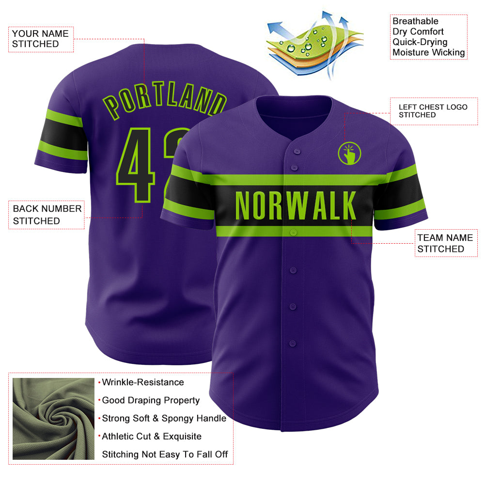Custom Purple Black-Neon Green Authentic Baseball Jersey