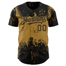 • Загрузить изображение в средство просмотра галереи, Custom Black Old Gold 3D Pattern Design Abstract Splatter Grunge Art Authentic Baseball Jersey